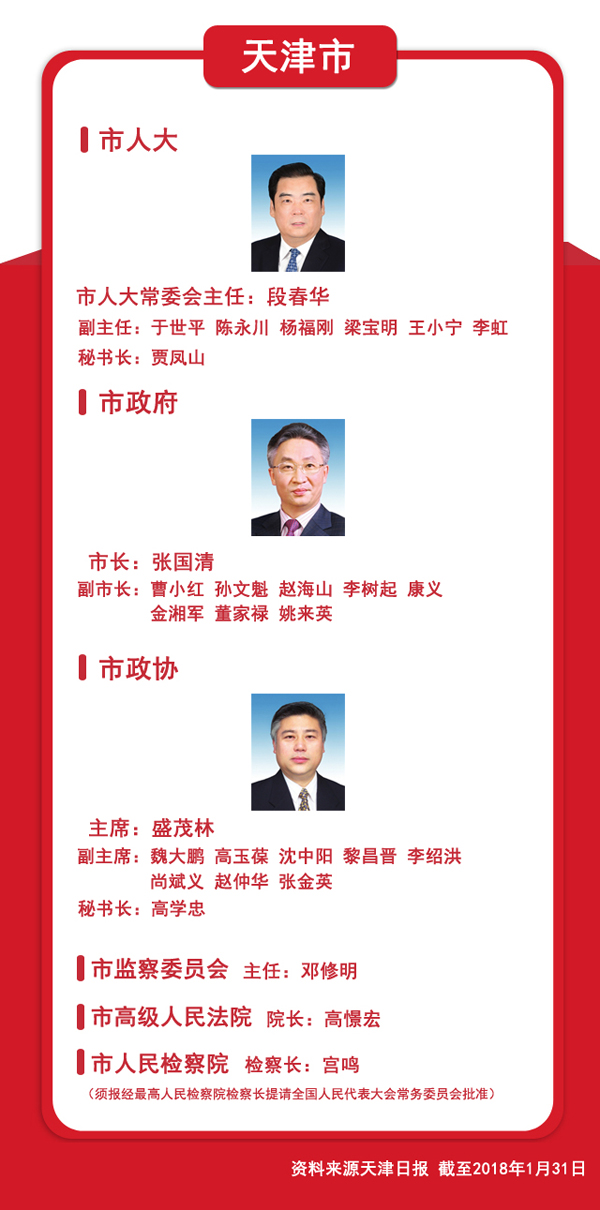 圖文速覽:31省區(qū)市新一屆人大政府政協(xié)領導班子