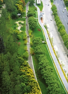 “一軸”指沿錦江從都江堰紫坪鋪至雙流黃龍溪總長(zhǎng)200公里的錦江綠道;“兩山”指沿龍門(mén)山東側(cè)、長(zhǎng)度約350公里的龍門(mén)山森林綠道,沿龍泉山西側(cè)、長(zhǎng)度約200公里的龍泉山森林綠道;“三環(huán)”分別指沿三環(huán)路總長(zhǎng)100公里的熊貓綠道,依托環(huán)城生態(tài)帶、主線總長(zhǎng)200公里的錦城綠道,沿第二繞城高速路、總長(zhǎng)約300公里的田園綠道。