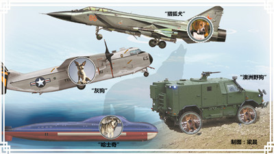 現(xiàn)代戰(zhàn)爭(zhēng)中,偵察通信、巡邏警衛(wèi)、搜救排爆等軍犬的傳統(tǒng)優(yōu)勢(shì)領(lǐng)域漸漸被高科技的信息化裝備所替代。不過(guò),為了表達(dá)人類(lèi)對(duì)狗的喜愛(ài)和依賴,很多武器裝備仍用“狗”或“犬”等字眼來(lái)命名。它們上天入地下海,各顯神通,爭(zhēng)雄斗勝,身懷絕技,發(fā)展出兵器家族中的一股“生猛”力量。