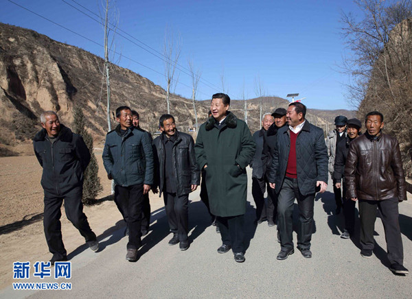 2015年2月13日,習(xí)近平回到曾插隊(duì)7年的陜西延川縣文安驛鎮(zhèn)梁家河村看望村民,自掏腰包給鄉(xiāng)親們送上年貨。他此行還有一個(gè)重要目的是對(duì)革命老區(qū)脫貧致富進(jìn)行調(diào)研,確保老區(qū)人民同全國(guó)人民一道進(jìn)入全面小康社會(huì)。