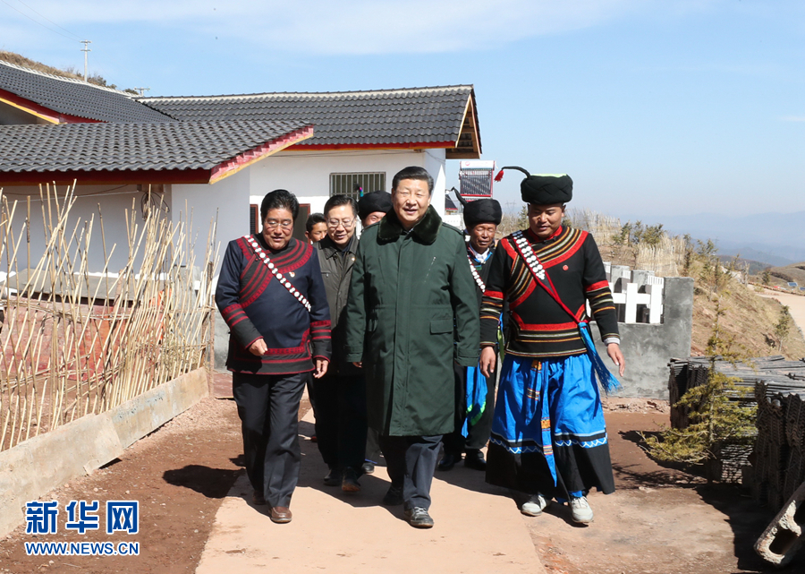 這是2月11日上午,習(xí)近平在涼山彝族自治州昭覺縣解放鄉(xiāng)火普村了解易地扶貧搬遷和彝家新寨建設(shè)情況。 新華社記者 鞠鵬 攝