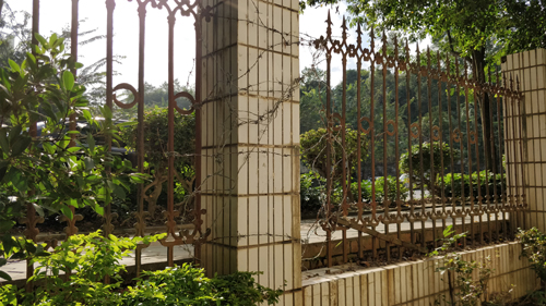 在陽光綠城小區(qū),小區(qū)臨街的一面欄桿被人為剪斷,只是用鐵絲臨時纏繞