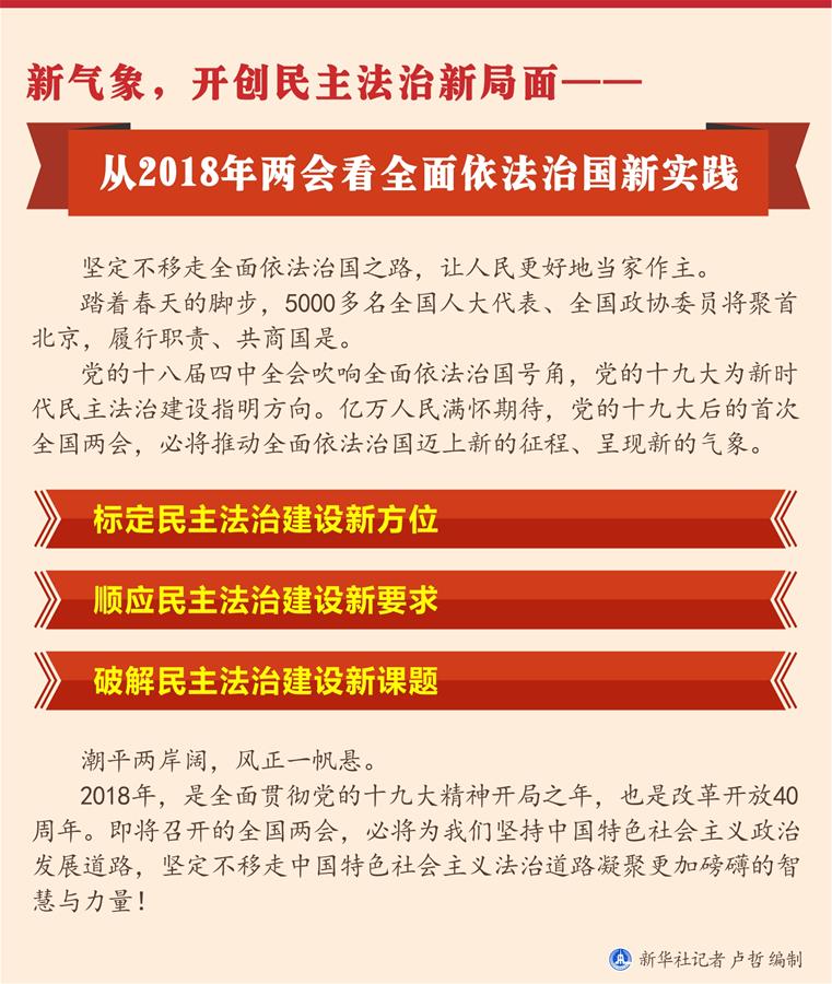 新華社北京2月28日電 題:新氣象,開(kāi)創(chuàng)民主法治新局面——從2018年兩會(huì)看全面依法治國(guó)新實(shí)踐