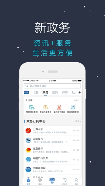 新華社已與3000多家地方政府機(jī)構(gòu)簽訂內(nèi)容合作協(xié)議,來自全國的政務(wù)資訊與新華社客戶端實(shí)現(xiàn)互聯(lián)互通、同步發(fā)布,用戶可以自主訂閱各地各類政務(wù)專欄。在新聞服務(wù)的基礎(chǔ)上,新版開始向功能性政務(wù)服務(wù)延伸,為全國用戶提供包括駕駛扣分、車輛違章、學(xué)歷證書和社保信息等多種查詢服務(wù)。