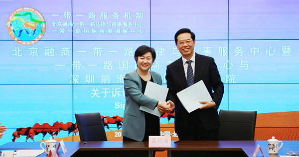 2017年7月,深圳前海合作區(qū)人民法院到一帶一路國際商事調(diào)解中心調(diào)研,了解中心在商事調(diào)解領(lǐng)域的理論和實(shí)踐探索,并與調(diào)解中心提出的“線上線下對(duì)接、訴訟調(diào)解對(duì)接”等創(chuàng)新理念一拍即合。隨后的半年中,雙方就案件管轄權(quán)確定、訴調(diào)對(duì)接機(jī)制建設(shè)、線上調(diào)解信息化系統(tǒng)架構(gòu)等諸多問題進(jìn)行了數(shù)次交流和討論,最終促成了此次簽約。