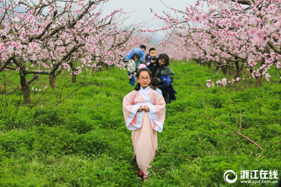 3月25日,身穿古裝的小朋友在浙江省寧波市橫溪鎮(zhèn)生態(tài)農(nóng)業(yè)園內(nèi)游玩。