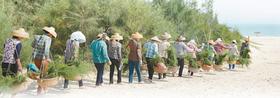 圖為陶鳳交帶領(lǐng)綠色娘子軍去海邊植樹。廖傳松攝