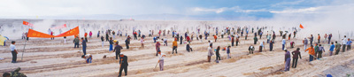 1990年3月,阿克蘇各族干部群眾在柯柯牙參加義務(wù)植樹大會戰(zhàn)。馬戰(zhàn)峰攝