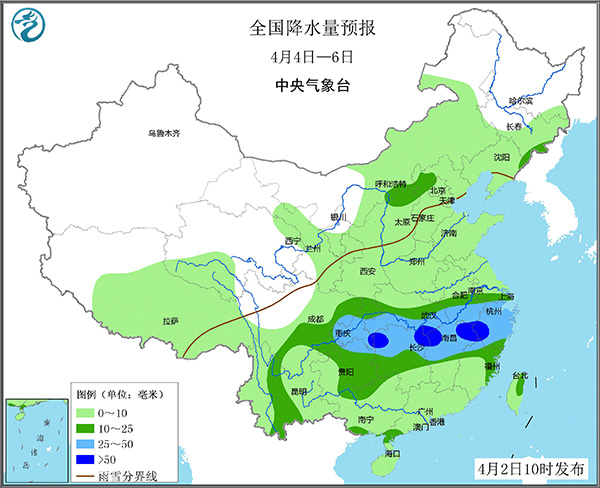 降水量預報圖(4月4日—6日)