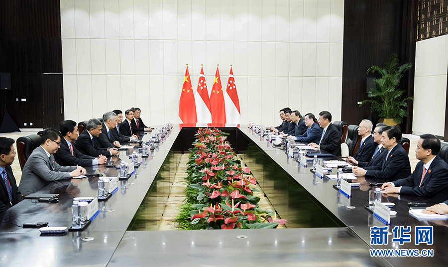 習近平指出,中新關系發(fā)展同中國改革開放息息相關。當前,中國特色社會主義進入新時代,新加坡正在實施“未來經濟發(fā)展戰(zhàn)略”。雙方要結合新形勢新特點,對雙邊關系和務實合作作出新的戰(zhàn)略謀劃和頂層設計。雙方要推進政府間大項目合作。要加強“一帶一路”框架內合作,繼續(xù)打造好兩國共建的“南向通道”,將“一帶”和“一路”更好連接起來。中方愿同包括新方在內東盟國家加強溝通協(xié)調,實現(xiàn)“一帶一路”倡議同東盟發(fā)展規(guī)劃更好對接,構建更為緊密的中國-東盟命運共同體,希望新加坡發(fā)揮積極建設性作用。