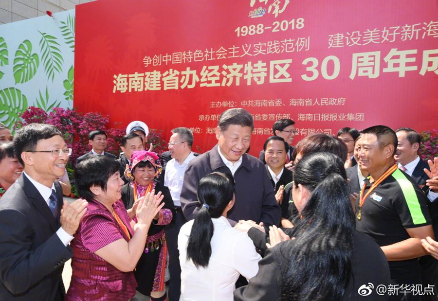 新華網(wǎng)北京4月13日電 13日上午,習(xí)近平總書記在??谑袇⒂^了海南建省辦經(jīng)濟(jì)特區(qū)30周年成就展,對(duì)30年來特別是黨的十八大以來海南經(jīng)濟(jì)社會(huì)發(fā)展成就給予肯定。他指出,貫徹黨中央精神不是喊口號(hào),要結(jié)合當(dāng)?shù)貙?shí)際、經(jīng)過深入調(diào)研形成符合黨中央精神的一系列具體舉措,并在實(shí)施中早見成效、大見成效。