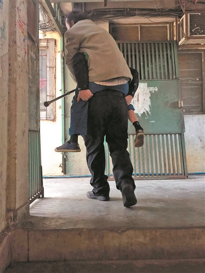 原標(biāo)題:六旬老人行路艱難癱坐街頭 輔警掏錢幫買米還背老人回家好輔警背獨居老人上5樓