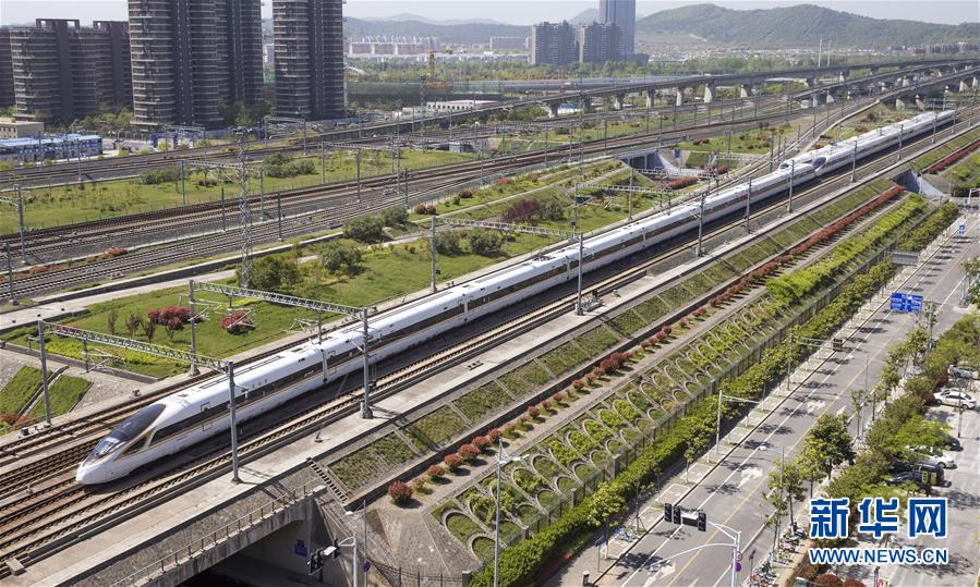 4月9日,一列“復(fù)興號(hào)”動(dòng)車組列車行駛在京滬高鐵南京市境內(nèi)。國(guó)家統(tǒng)計(jì)局4月17日發(fā)布數(shù)據(jù),初步核算,一季度國(guó)內(nèi)生產(chǎn)總值198783億元,按可比價(jià)格計(jì)算,同比增長(zhǎng)6.8%。 新華社發(fā)(蘇陽 攝)