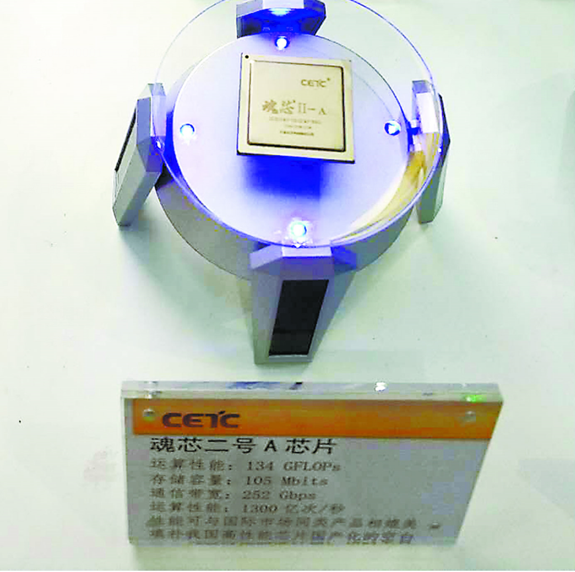 2012年,中國電科38所推出我國自主研發(fā)的首款實(shí)用型高性能浮點(diǎn)通用DSP(數(shù)字信號處理器)芯片——“魂芯一號”。 “魂芯一號”每秒能完成300億次浮點(diǎn)運(yùn)算或80億次浮點(diǎn)乘法累加運(yùn)算,可謂真正的中國“芯”、民族“魂”,其成功應(yīng)用打破了國外高性能芯片在中國的壟斷地位。就性能而言,“魂芯一號”的性能高于同期市場同類DSP芯片3倍至4倍,并成功應(yīng)用在我國空警-500預(yù)警機(jī)雷達(dá)等多個國防科技裝備上,讓空警-500實(shí)現(xiàn)了“小平臺、大預(yù)警、高性能、新一代”的戰(zhàn)略目標(biāo),成為我國首款廣泛應(yīng)用于國防科技裝備的高端自主數(shù)字信號處理器。