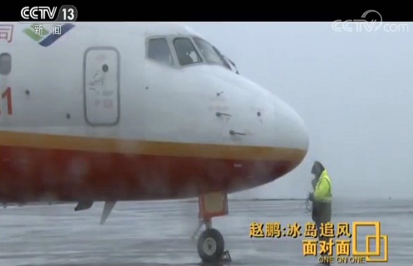 3月26日上午9點整,當試飛機組終于得到允許起飛的指令時,天空中出現(xiàn)了一道絢麗的彩虹,伴隨著這個意外降臨的驚喜,試飛機組駕駛著ARJ21迎風(fēng)起飛。在強烈的側(cè)風(fēng)沖擊下,飛機的機身開始晃動,地面團隊成員的心也隨之提了起來。決定性的一刻即將到來,當ARJ21像“螃蟹”一樣緩緩的降落在了凱夫拉維克機場,監(jiān)測中心的成員們激動不已。