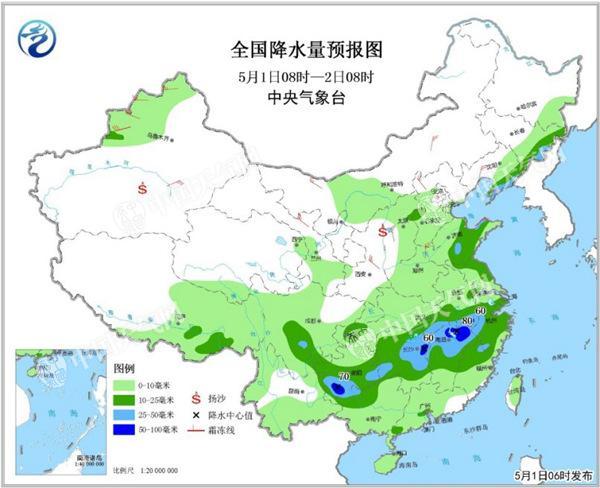 中央氣象臺預(yù)計(jì),5月1日至3日,我國中東部自西向東將有一次較大范圍降水天氣過程,其中,東北地區(qū)東南部、黃淮東部、西南地區(qū)東部和南部、江漢南部、江南大部、華南中西部等地的部分地區(qū)有中到大雨,局地暴雨或大暴雨,上述局部地區(qū)將伴有短時強(qiáng)降水、雷暴大風(fēng)等強(qiáng)對流天氣。