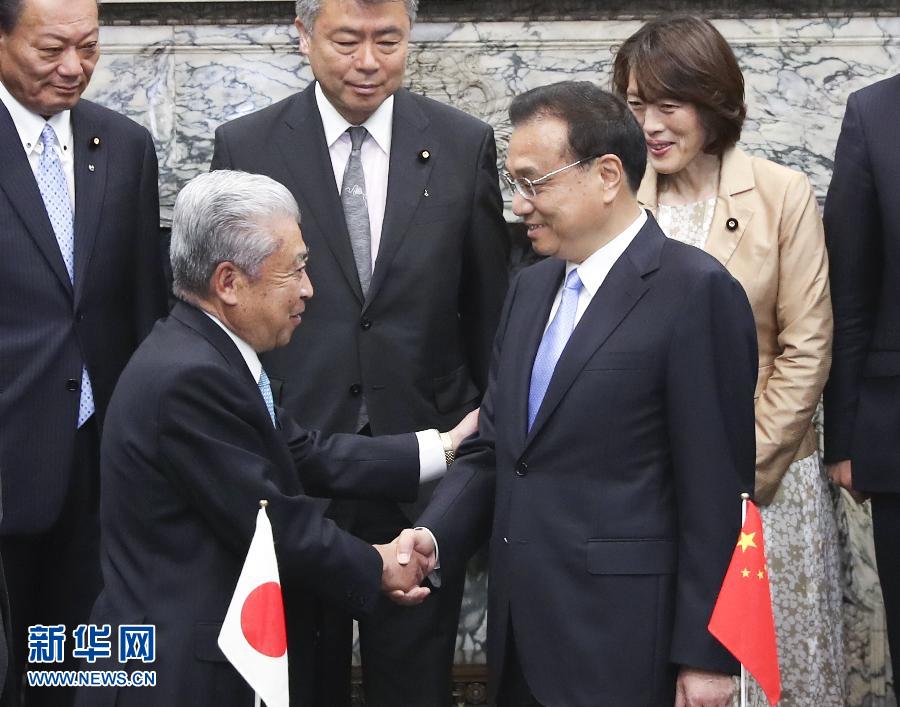 當?shù)貢r間5月10日上午,國務(wù)院總理李克強在東京日本國會參議院會見參議長伊達忠一。 新華社記者 龐興雷 攝