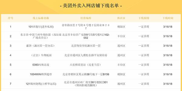 在“安全承諾”公示旁邊附有“下線名單公示專欄”,點開即三大平臺的“因食品安全問題下線商戶名單”。食藥監(jiān)管部門查處的、消費(fèi)者投訴舉報后核實的、平臺自查出來的商戶名單都將放入這個欄目,隨時更新。下線名單的格式項目包括商戶名稱、經(jīng)營場所、所屬區(qū)、下線原因以及下線時間。