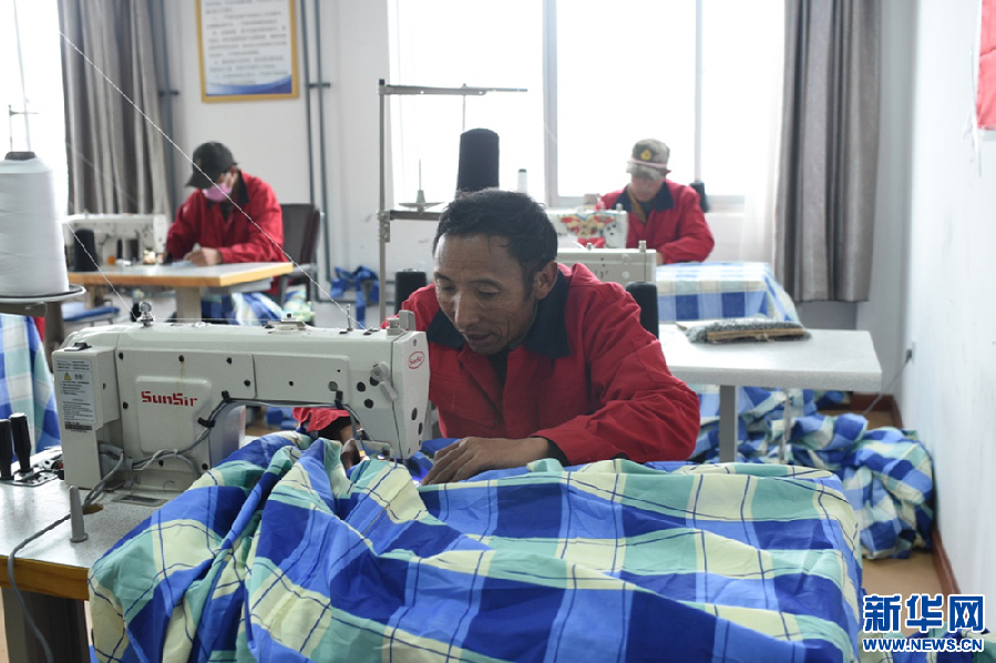 走出五保戶集中供養(yǎng)服務(wù)中心,對面就是錯(cuò)那縣殘疾人就業(yè)中心。成立于2016年的殘疾人就業(yè)中心目前幫助16名建檔立卡貧困戶殘疾人解決了就業(yè)問題。每位殘疾人通過5個(gè)月的免費(fèi)培訓(xùn)就可以正式上崗,為一些學(xué)校制作校服,為各部門制作彩旗、藏裝、窗簾、救災(zāi)帳篷、旅游特色禮品等。每人每月能拿到2000-3500元不等的工資。