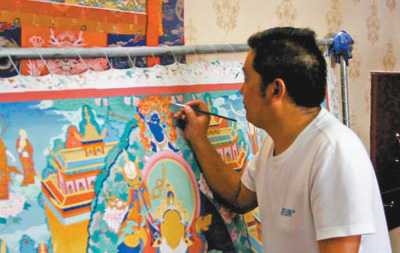 “心靜下來才可以作畫,進入狀態(tài)后我可以連續(xù)畫4個小時。一幅唐卡可以保存流傳千年,作畫的人和歷史能夠融為一體。”在桑吉東知眼里,“每次創(chuàng)作都是文化的傳承,都是心靈的凈化?!保ㄓ浾?袁泉)