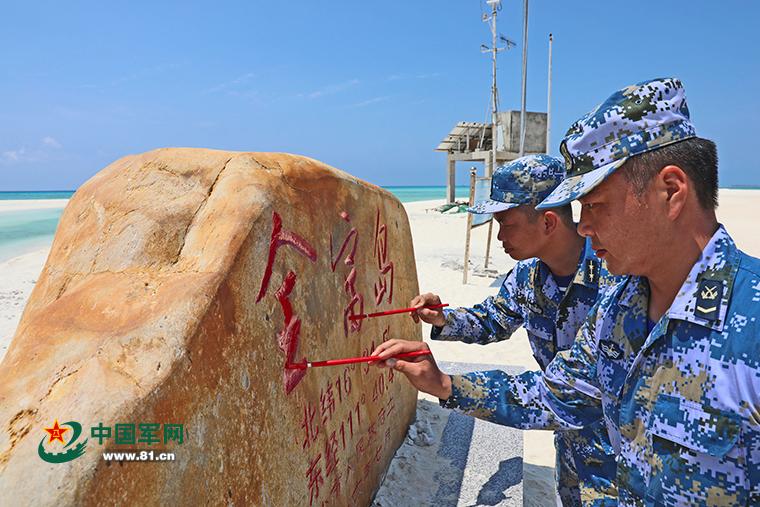 在全富島,關建軍和三沙市副市長陳儒茂帶頭描摹主權碑上“中國”兩個大字?!懊棵枰还P,都感到神圣無比,建設強大穩(wěn)固的現(xiàn)代邊??辗?,共同守護好我們的祖宗海,離不開軍地協(xié)力??钙疬@一如山使命,我們責無旁貸!”關建軍的話語擲地有聲。特約記者 薛成清 通訊員 盆世舟 潘新新
