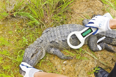 汪仁平說,2006年放歸的一條雄性揚(yáng)子鱷走出了放歸區(qū)域,跑到3公里外一個(gè)魚塘筑巢?!巴ㄟ^無線電發(fā)射器,這條揚(yáng)子鱷被找到了。”