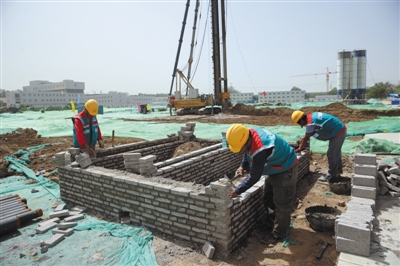 昨日,廣渠路快速公交系統(tǒng)工程正式開(kāi)工建設(shè),工人在現(xiàn)場(chǎng)施工作業(yè)。新京報(bào)記者 王貴彬 攝