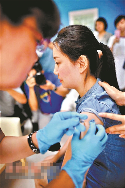 史佳雨在接種HPV9價(jià)疫苗。(圖片來源:海南日報(bào))