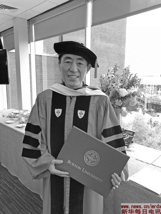 ◥手持波士頓大學榮譽博士學位證書的張藝謀導演。 攝影:記者董丁