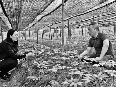 科研人員在文山苗鄉(xiāng)三七種植基地查看三七種苗。本報記者 張勇攝/光明圖片
