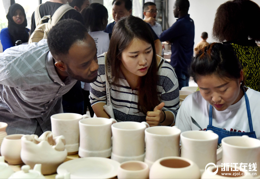 2018年6月3日,來自30多個國家的70多名留學(xué)生,在武義漢坊婺窯認(rèn)真學(xué)習(xí)修坯、上釉等環(huán)節(jié)。
