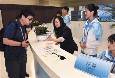 6月1日,志愿者正式上崗,為參會(huì)嘉賓、媒體等提供抵離、翻譯、媒體服務(wù)、城市運(yùn)行等全方位、精細(xì)化的志愿服務(wù)。為了讓志愿服務(wù)更加周到貼心,青島還根據(jù)志愿者的個(gè)人專業(yè)、特長和意愿進(jìn)行了分組。在新聞中心,就有300多名志愿者。