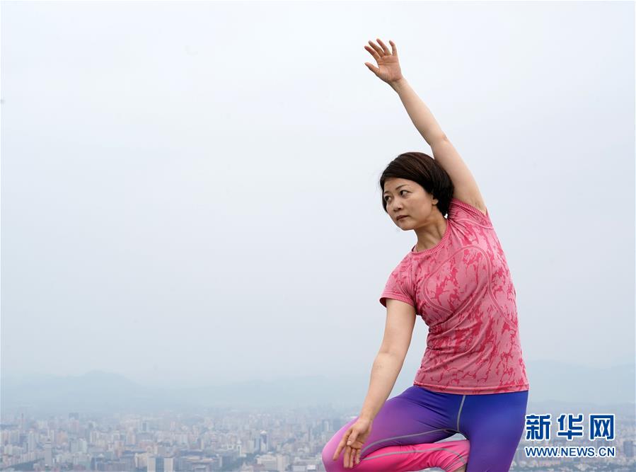 6月9日,在北京國(guó)貿(mào)大酒店頂層的83層停機(jī)坪,一名瑜伽愛(ài)好者在練習(xí)瑜伽。
