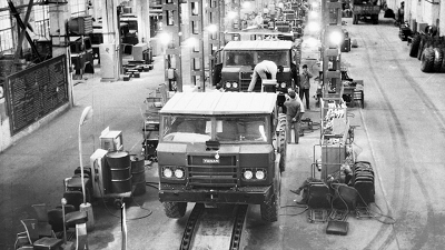 1984年,當年國慶受閱車從陜汽麥李西溝重型軍用汽車基地下線(新華社發(fā));2018年3月15日,卡車從陜重汽汽車總裝配廠下線(新華社記者 邵瑞 攝)。