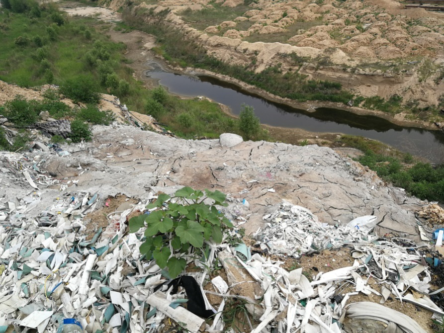 現(xiàn)場(chǎng)檢查發(fā)現(xiàn),在大沙河定州段遠(yuǎn)遠(yuǎn)望去,河堤上堆滿了生活垃圾、工業(yè)廢渣、邊角料、醫(yī)療廢物等多種固體廢物,各種垃圾“應(yīng)有盡有”,形成了一個(gè)長(zhǎng)約3公里的“垃圾帶”。與長(zhǎng)度同樣驚人的,是“垃圾帶”的寬度,垃圾一直從河堤延伸至河床上,斜坡高度達(dá)到10米左右。