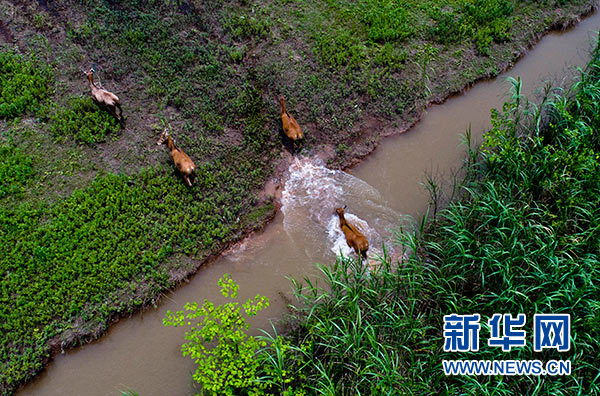 從湖南省林業(yè)廳獲悉,湖南省林業(yè)廳近日在東洞庭湖國家級自然保護區(qū)啟動無人機巡護監(jiān)測時,拍攝到自然野化麋鹿群,共有62頭,這是洞庭湖目前一次性監(jiān)測到的最大種群。2017-05-06 10:41:17