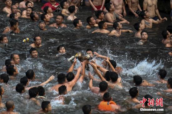 6月18日,正值端午佳節(jié),湖南鳳凰古城沱江河上一年一度的搶鴨子習(xí)俗吸引了數(shù)萬(wàn)游人圍觀。楊華峰 攝