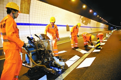 昨天上午,在懷柔區(qū)分水嶺隧道,路政養(yǎng)護人員正在安裝各類交通安全標識。隨著防撞護欄、反光輪廓、視覺減速標識陸續(xù)安裝完成,幽暗狹長的隧道變得明亮起來。據(jù)介紹,反光輪廓和視覺減速標識首次在京隧道投入使用,無論白天還是夜間,明亮的標識都能引導司機看清路面。