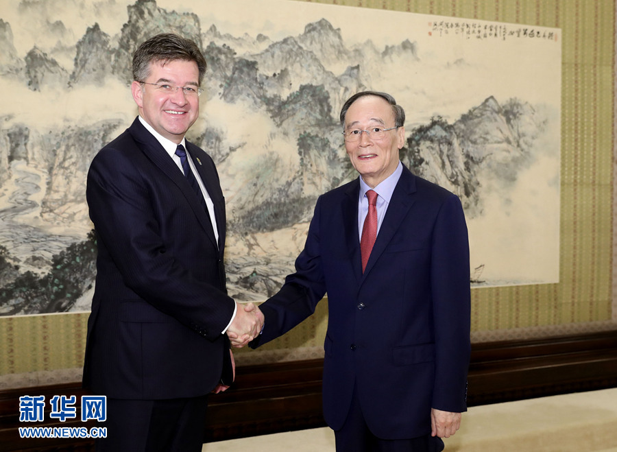 7月2日,國家副主席王岐山在北京中南海會見第72屆聯(lián)合國大會主席萊恰克。 新華社記者 丁林 攝