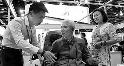 第七屆中國國際養(yǎng)老服務(wù)業(yè)博覽會現(xiàn)場,一款理療設(shè)備吸引了老年觀眾的關(guān)注。新華社發(fā)