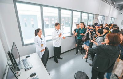一部《我在故宮修文物》讓故宮成為了網(wǎng)紅。其中提到的文物醫(yī)院令人心馳神往。在2018年6月9日“文化和自然遺產日”當天,故宮文物醫(yī)院迎來了第一批40名預約觀眾。圖為故宮博物院院長單霽翔(左二)在故宮文物醫(yī)院首次開放活動現(xiàn)場為觀眾講解。新華社記者 劉 潺攝