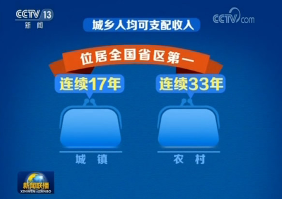 “八八戰(zhàn)略”實施15年來,浙江在全國1.1%的土地上,創(chuàng)造了占全國6.2%的經(jīng)濟總量,城鄉(xiāng)人均可支配收入連續(xù)17年和33年位居全國第一,城鄉(xiāng)收入差距全國最小,全面小康實現(xiàn)水平全國省區(qū)最高。