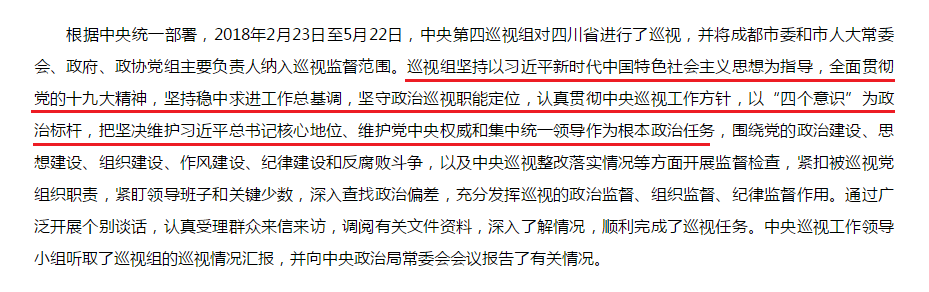 中央第四巡視組向四川省委反饋巡視情況,圖為中央紀委國家監(jiān)委網(wǎng)站發(fā)布消息部分截圖。