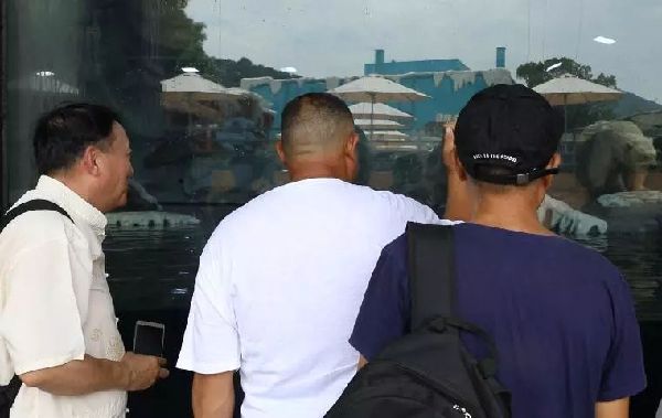 北極熊的屁股圓滾滾,尾巴短小得不太看得出來,它正在水邊踱步……兩個(gè)老男人趴在玻璃墻上看得入迷,一直看到眼淚都出來了。