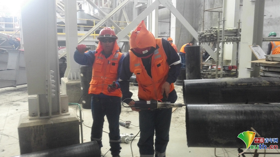 考慮到管材運(yùn)輸周期長且不便,班組成員來到工地做的第一件事就是重新根據(jù)圖紙核對管材。面對數(shù)以千計(jì)的管線圖紙,他們白天黑夜連軸轉(zhuǎn)一個(gè)月,困了就趴在圖紙上休息,再加上飲食差異和倒時(shí)差的折磨,員工出現(xiàn)水土不服、上吐下瀉的狀況。