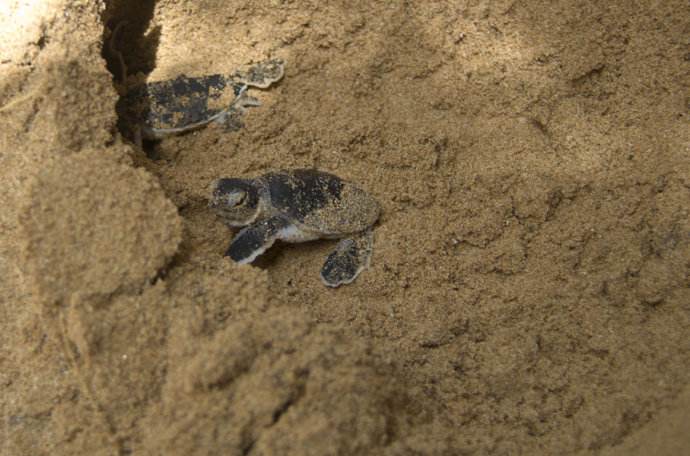 斯里蘭卡綿長的海岸線是海龜?shù)奶烊痪奂兀欢缃襁@一海洋“活化石”的數(shù)量正在急劇減少。原本,小海龜?shù)某苫盥示蜆O低,大約1000只海龜卵才能孵化出1只小海龜。近年來海龜生存越發(fā)艱難,被漁網纏住、偷捕行為屢禁不止以及度假村的擴張等,都讓剛出殼的小海龜在回歸大海的短短路途中喪命。