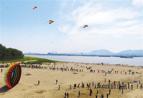 安徽省銅陵市義安區(qū)老洲鄉(xiāng)長江岸邊市民和游客在放風箏。近年來,銅陵市挖掘長江文化元素,打造老洲長江沙灘風箏旅游節(jié)、大通古鎮(zhèn)長江龍舟賽等特色長江旅游文化項目。 過仕寧攝