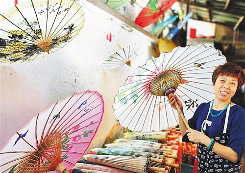 貴州省赤水市大同古鎮(zhèn),油紙傘傳人李珍霞在展示她制作的油紙傘。大同古鎮(zhèn)歷史悠久,擁有“獨竹漂”、竹編、油紙傘等非物質文化遺產(chǎn)。 經(jīng)濟日報-中國經(jīng)濟網(wǎng)記者 周明陽攝
