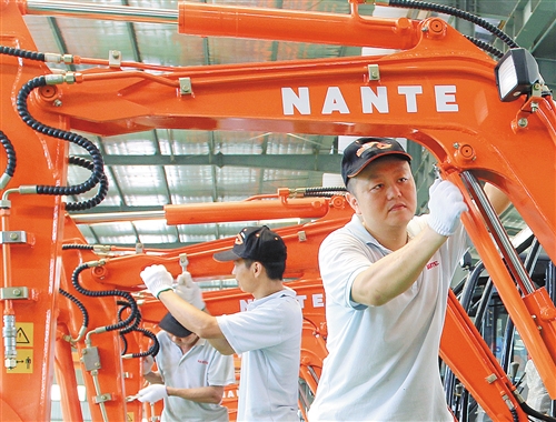 江西省高安高新技術(shù)產(chǎn)業(yè)園南特機(jī)械有限公司的“扶貧車間”里,員工在安裝設(shè)備。該市引導(dǎo)企業(yè)通過“企業(yè)+扶貧車間+貧困戶”的形式,帶動(dòng)有勞動(dòng)能力的貧困群眾脫貧致富。 彭松林 攝