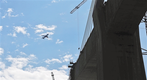 重慶市黔江區(qū)境內(nèi)在建的黔張常鐵路阿蓬江特大橋。近年來,黔江區(qū)加大立體交通建設(shè),有力推動(dòng)了當(dāng)?shù)亟?jīng)濟(jì)發(fā)展。 楊敏 攝